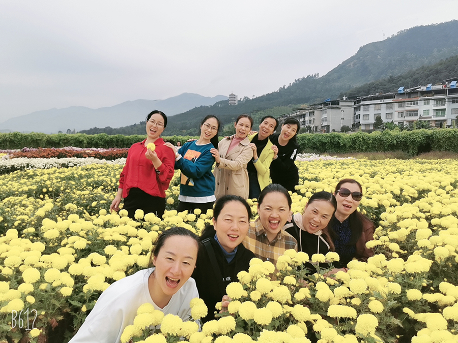仿佛感覺到了虹潤人的熱情,活動當天陽光明媚,偶有微風(fēng)徐徐,叫人心曠神怡。歷經(jīng)一個多小時,業(yè)務(wù)部一行來到了位于沙縣瑯口的三明國家農(nóng)業(yè)科技園區(qū)新品種展示中心,金秋時節(jié),“菊舞金秋,魅力沙縣”田園菊花展盛裝迎接。50畝菊花競相盛開,色彩斑斕,花型飽滿,搭配各式各樣的造型,令人目不暇接。