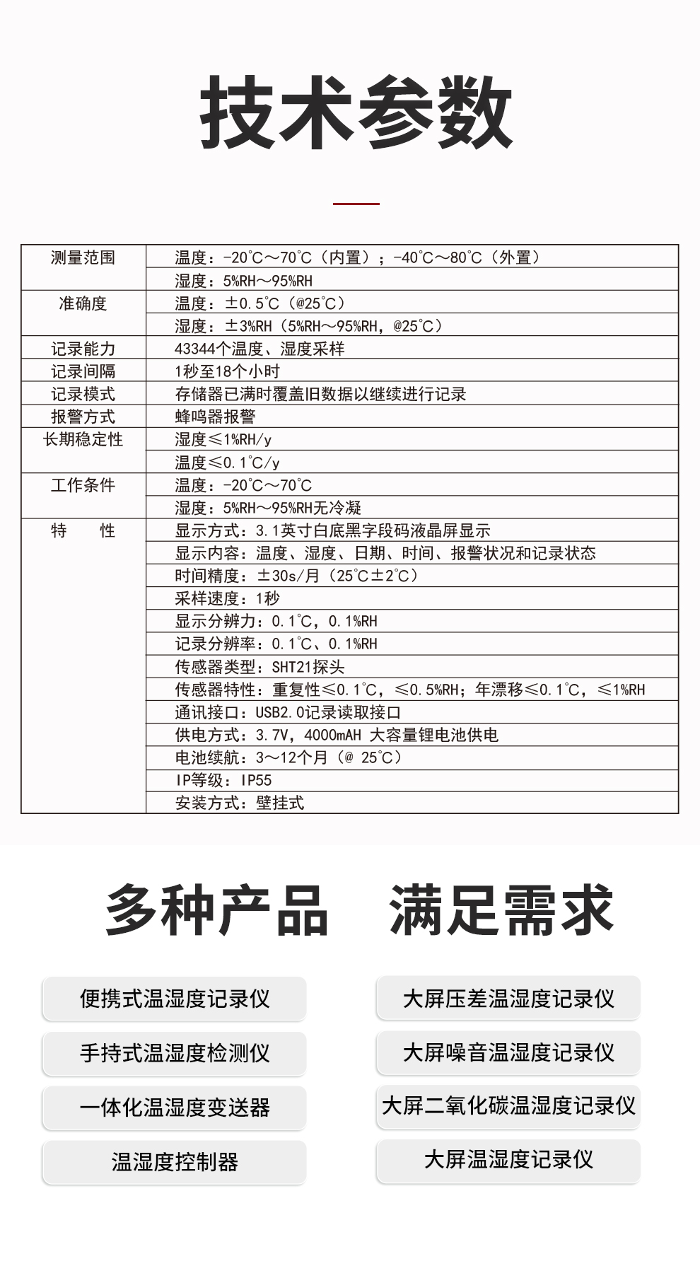 | 環(huán)境監(jiān)測(cè)儀 | 大屏溫濕度記錄儀 溫濕度儀表 環(huán)境參數(shù)變送器 直插式土壤傳感器 |